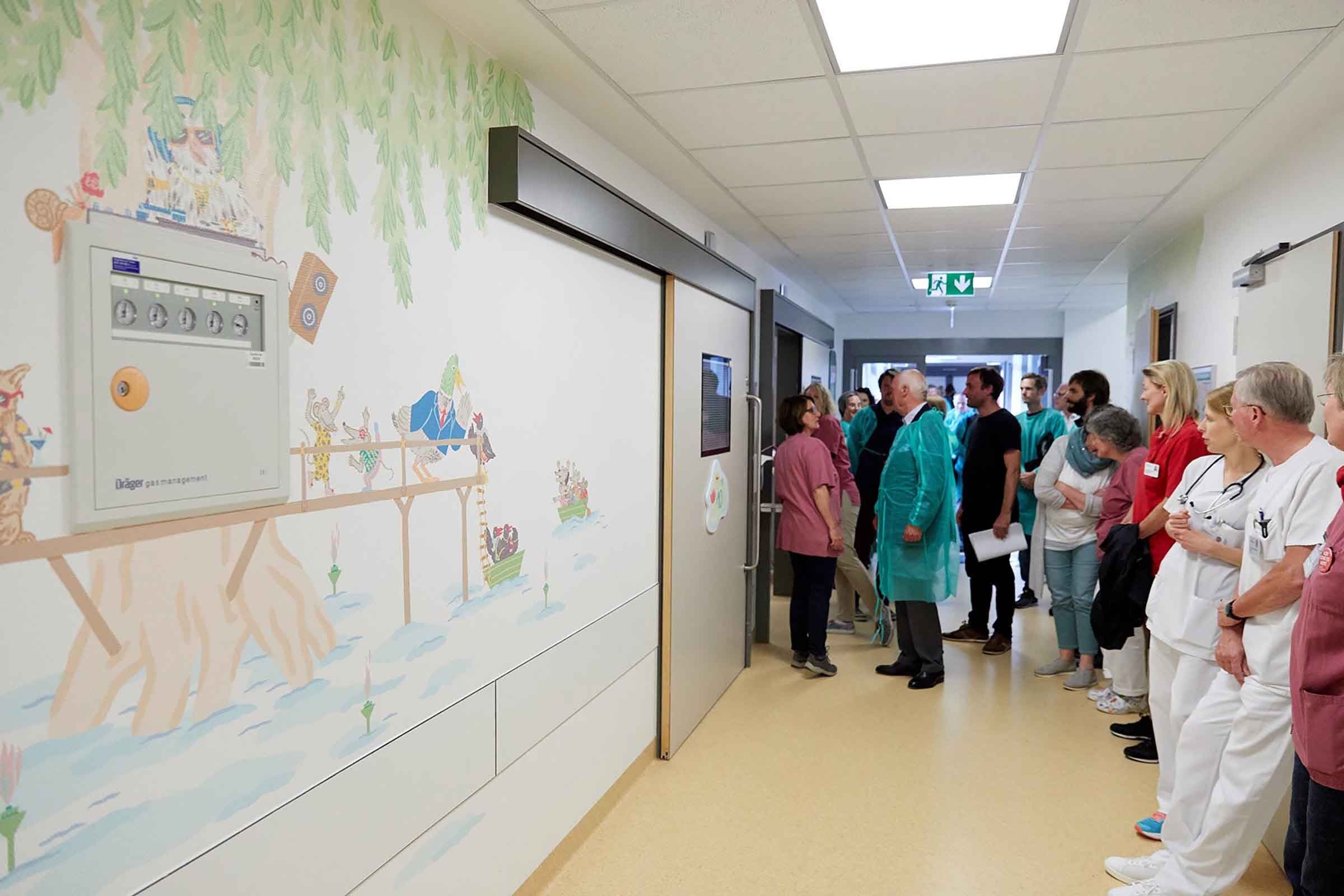 Die Künstlergruppe Paint a Smile hatte den ersten Teil ihrer künstlerischen Arbeiten im Sommer 2016 in der Kinderklinik abgeschlossen. Das Projekt umfasste nach Bestandsaufnahme, Vermessungen und Erstellung von Querschnittsplänen und Skizzen insgesamt vier Jahre.