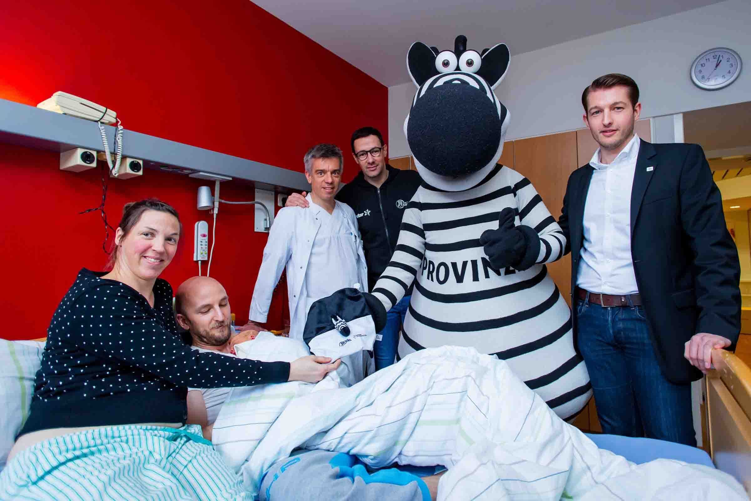 Bei der Premiere des exklusiv für das Städtische Krankenhaus aufgelegten Hein Daddel-Schnuffeltuchs war auch THW-Rückraumstar Marko Vujin zugegen. Vujin hat - wie viele weitere THW-Spieler - eine besondere Verbindung zum Städtischen Krankenhaus: „Vor einer Woche ist hier unser Sohn Matej Milan zur Welt gekommen. Wir haben uns in der familiären Atmosphäre des Städtischen Krankenhauses unglaublich wohl und aufgehoben gefühlt. Dass nun jedes Neugeborene mit unserem THW-Maskottchen nach Hause entlassen wird, ist eine tolle Aktion!“