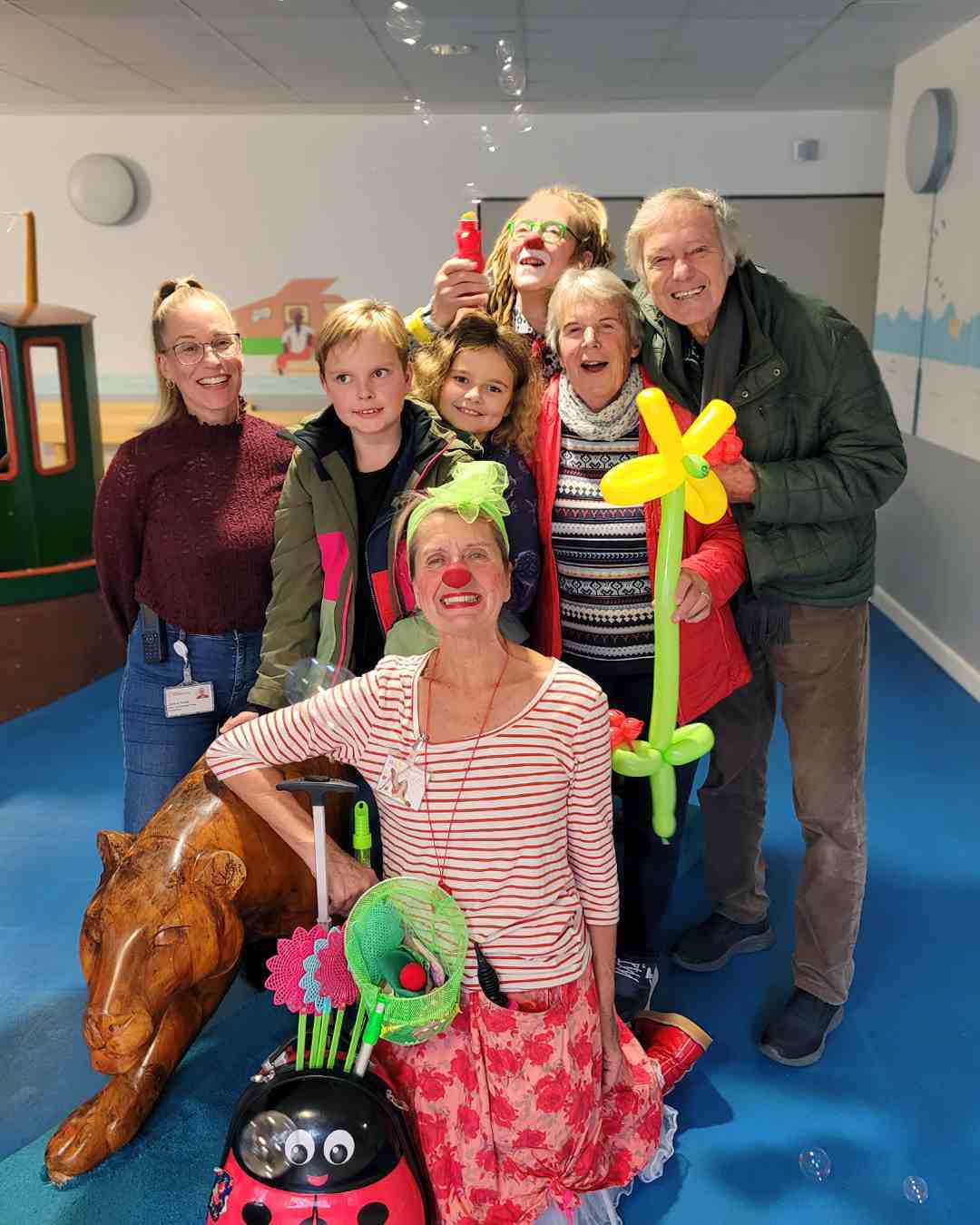 Glückwunsch und ein herzliches Dankeschön an Almut Abraham zum 80. Geburtstag und ihrer Idee anlässlich dieses runden Jubiläums für die Klinikclowns im Städtischen zu sammeln. Jetzt kam sie in den Herbstferien mit Ehemann und den Enkelkindern Hannah und Max bei den Klinikclowns Upps und Augustina sowie Kinderstation-Teamleitung Janina Mohr vorbei, die sich für diese Aktion bei ihr bedanken konnten. Es sind sensationelle 1000 Euro für den guten Zweck zusammengekommen!Viel Spaß gab es am 22. Oktober anlässlich der 1000 Euro Geburtstagsspende von Almut Abraham für die Klinikclowns anlässlich ihres 80. Geburtstages.
